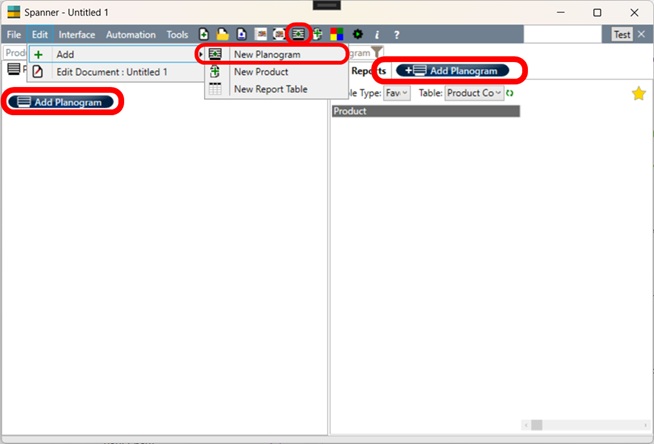 2] Via the 'Add Planogram' button on the Planograms tab in the navigator (left panel).