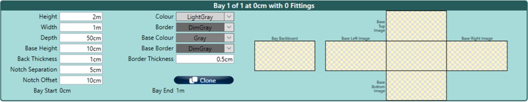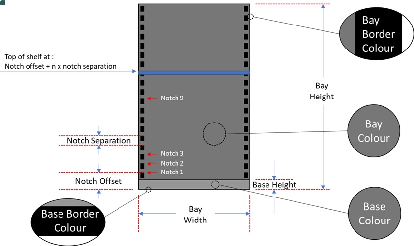 The bay width will be a default width for shelves or other fittings added to the bay (unless otherwise specified in the fitting settings).
